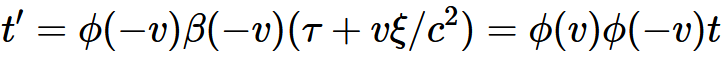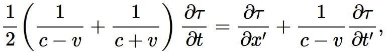 ・・・・式 3-2を得る。あるいは定常系に対して, 関数τについての上の議論と光速度不変の原理を当てはめることによって, 次の関係を得る: